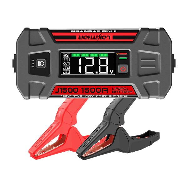 The LOKITHOR J1500 LiFePO4 cordless jump starter is a high-performance jump starter that delivers an impressive 1500Amp start current, enabling it to achieve up to 60 jump starts after a full charge. Whether you need to jump-start your vehicle in an emergency situation or simply want to have a dependable device on hand, the LOKITHOR J1500 LiFePO4 jump starter is a trustworthy choice that you can count on.