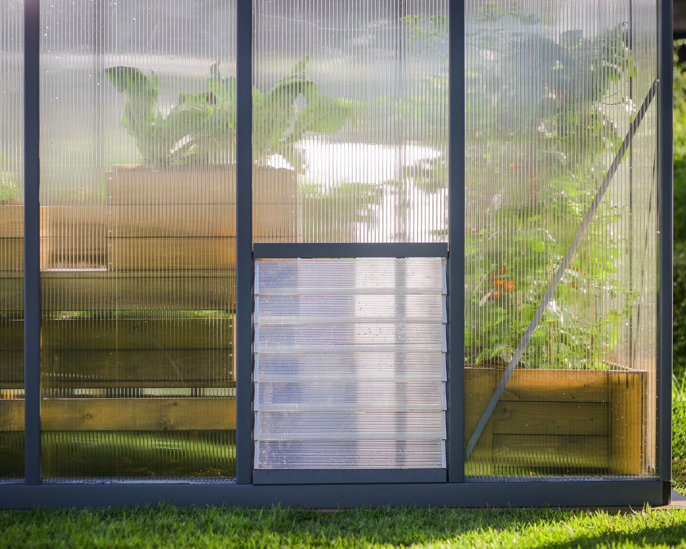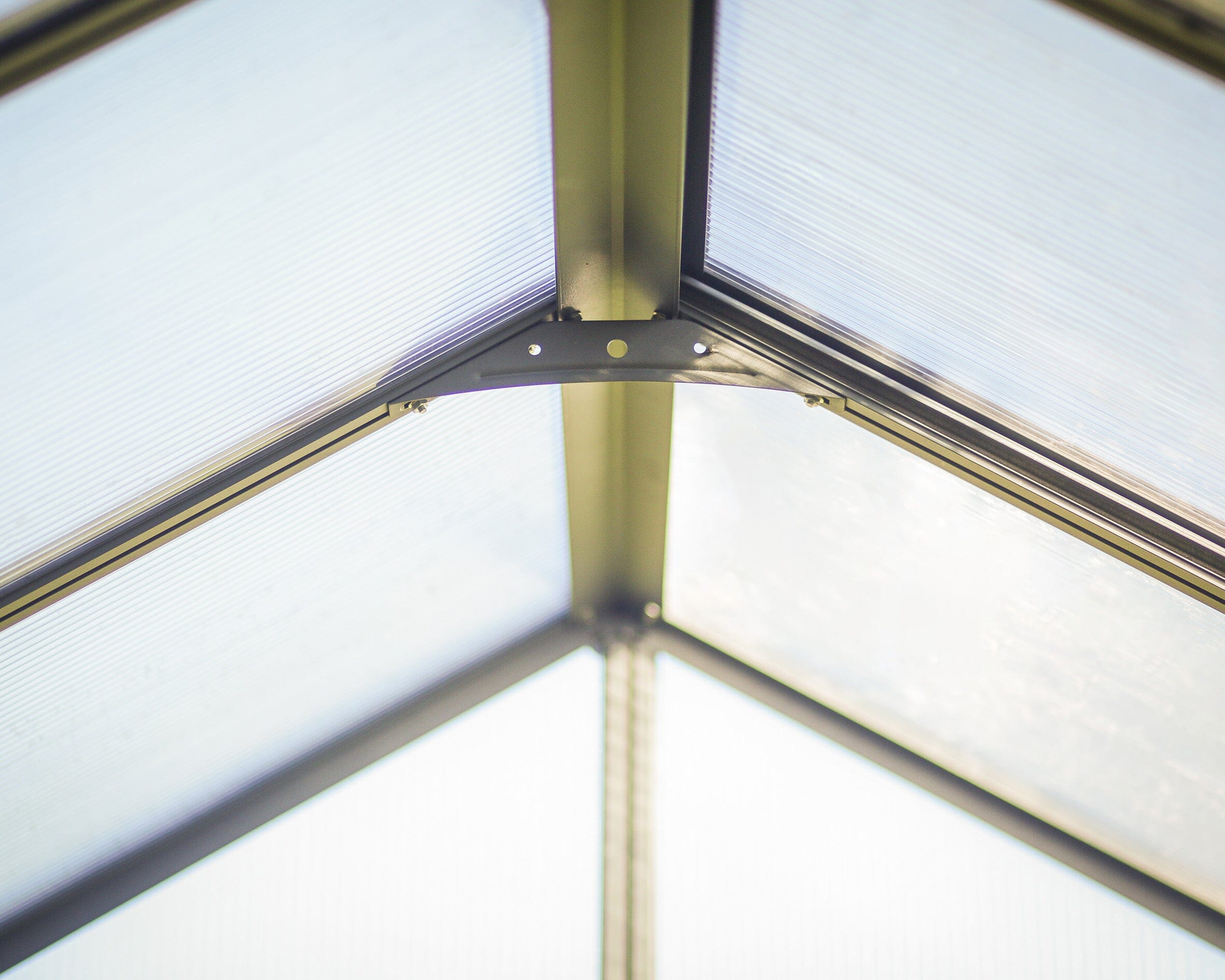 - Virtually unbreakable, 10 mm hail resistant & high impact twin-wall polycarbonate panels, 100% UV protected, provide extra protection and ideal insulation
