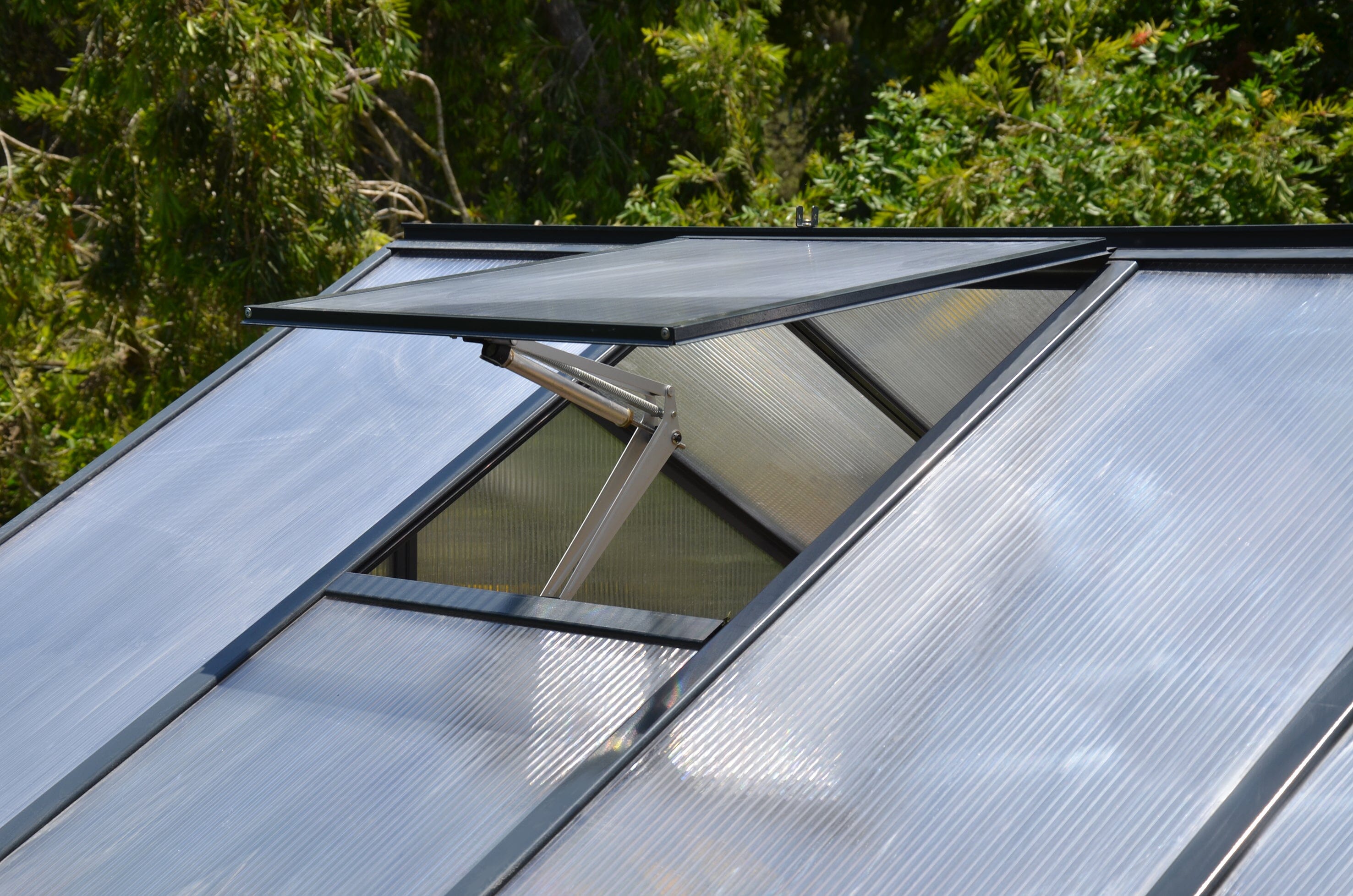 - Accessories included: (1) roof vent, (1) automatic vent opener, (1) side louvre window, (1) plant hangers’ kit