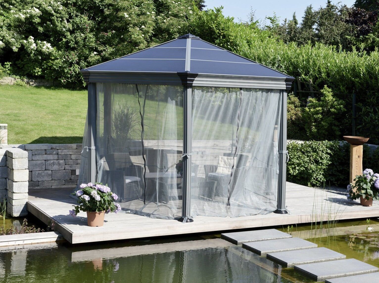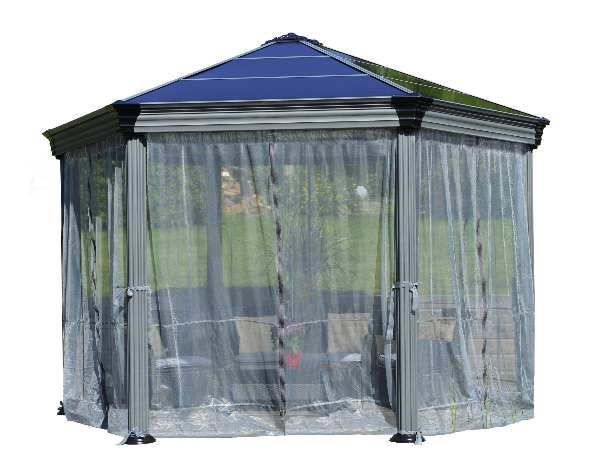 The Roma Gazebo Netting Set will add to your comfort by keeping out unwanted bugs. The lightweight polyester screen comes with hangers that slide into the track line of your Gazebo. Fits the Palram Roma Gazebo. One package has six sets of screens to cover your entire Gazebo. Easy to install and easy to use. Includes zipper to connect the screens together and ties to pull the screens to the corner posts.