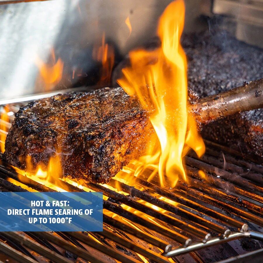 - Turn up the heat with the Flame Broiler™ Lever which allows for direct flame searing up to 1,000°F
