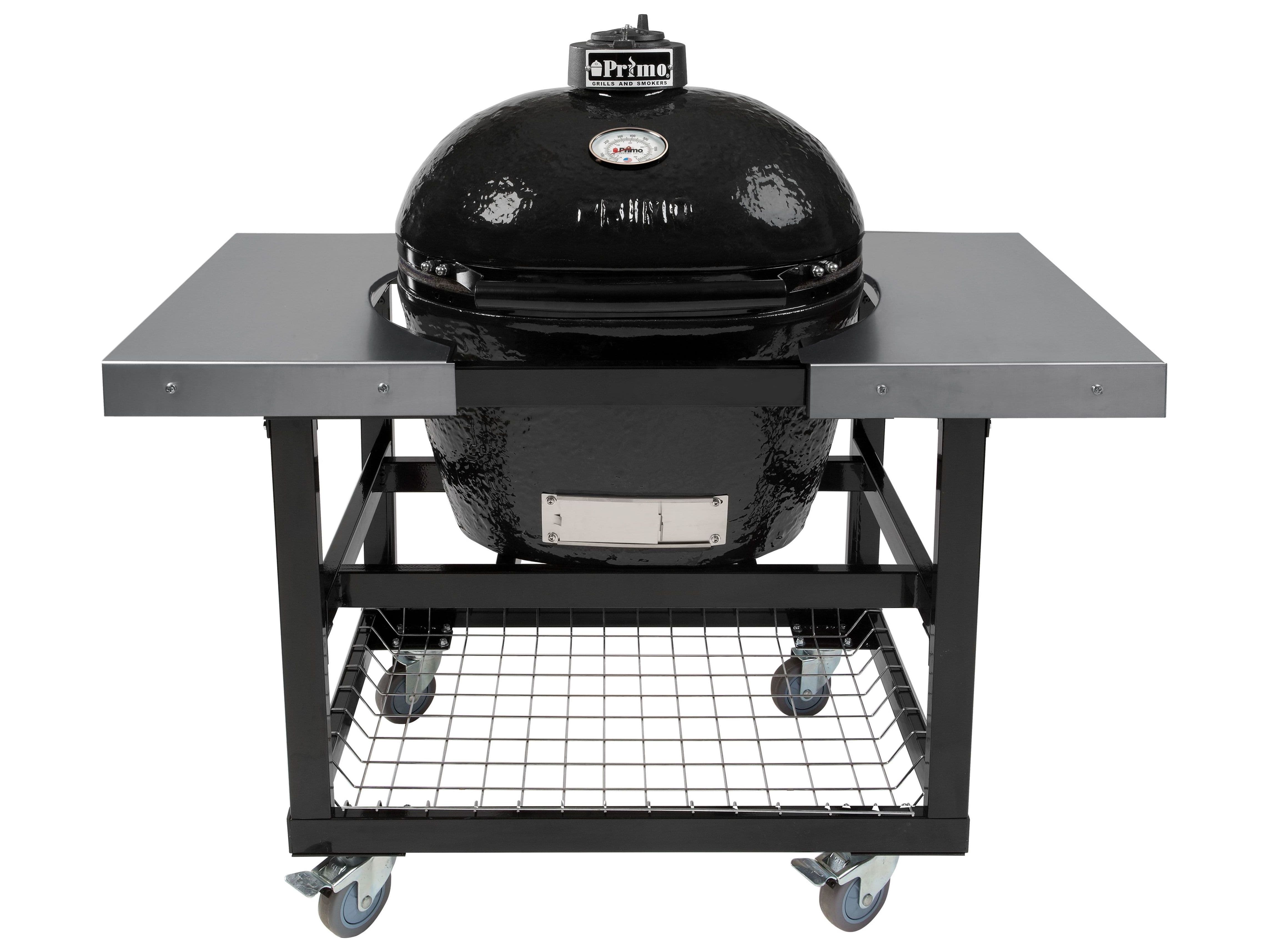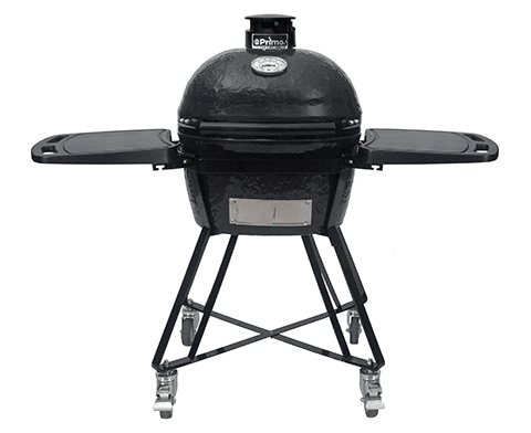 The Junior Charcoal Primo also has a Primo GO two-piece cradle and base available for additional purchase. This cradle and base make the Junior Charcoal Primo the largest portable ceramic grill available.
