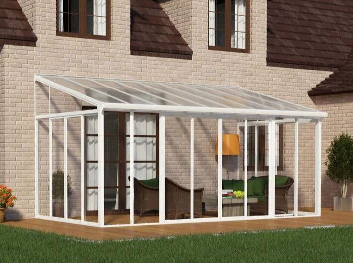 The SanRemo Patio Enclosure is a sophisticated home addition providing you with an affordable and maintenance-free space for relaxation. You have a pristine view outside of the elements, featuring high-impact crystal-clear acrylic wall panels and Palram’s virtually unbreakable polycarbonate roof system. A reinforced corrosion-resistant aluminum frame adds to the ambiance and durability making the San Remo Patio Enclosure a stout extension for your home. Three lockable double sliding doors safeguard your new space and provide several easy access points. Relax with a good book or entertain family and friends in your new backyard space.