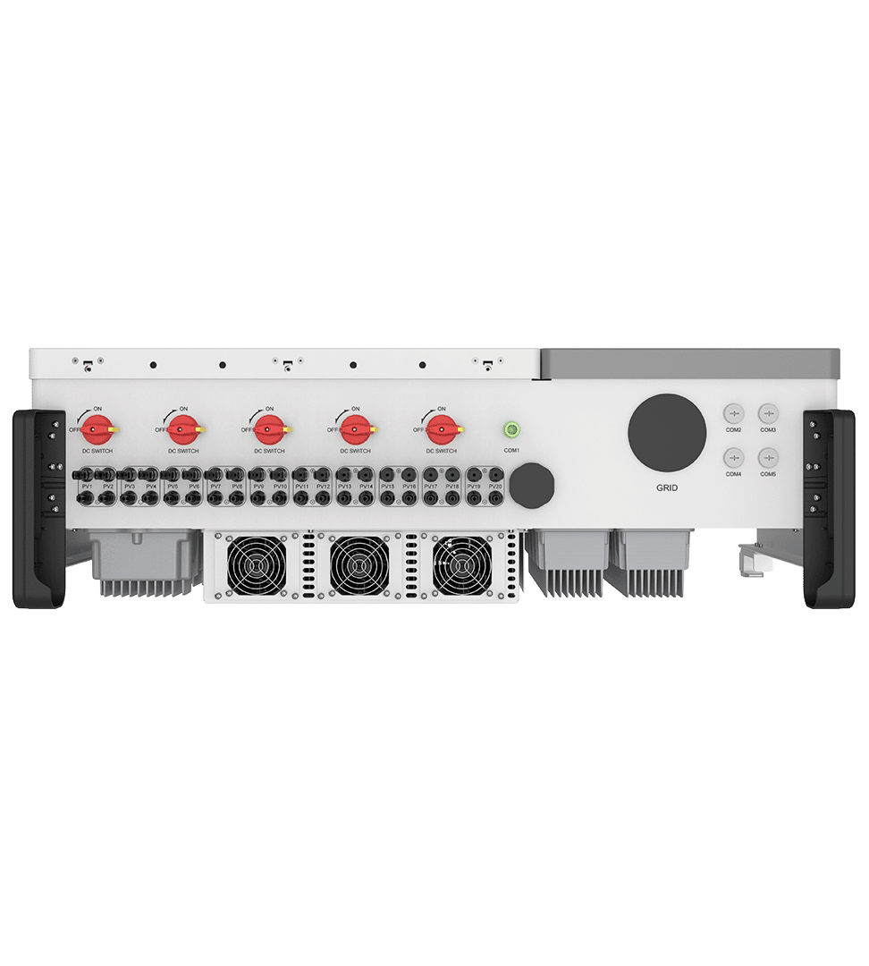 The Solis Solar S5-GC100K-US is the preferred PV string inverter for large commercial rooftop or ground mount PV projects. The S5-GC100K-US inverter features 10 independent MPPTs with very wide full-power operating ranges that can work efficiently with both 600Vdc and 1000 Vdc PV arrays. String current up to 16A, perfectly accommodates new high-power and bi-facial PV modules. Easy-to-use online O&M tools make O&M more intelligent and convenient. Optimized DC&AC interconnection will reduce the cost of system cables. Enclosures rated to IP66 protection grade can be installed in the harshest environmental conditions.