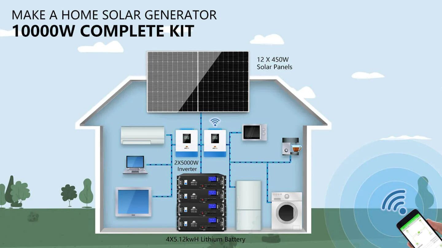 Included in the SunGoldPower SGR-10K2M kit are twelve 450W solar panels, combining to offer a total capacity of 5400W. This sizeable solar panel array is integral to effectively capturing and converting solar energy, essential for charging the 20.48KWH battery and powering the 10000W inverter. The total wattage and efficiency of these panels are particularly beneficial for ensuring effective energy production, even in areas with variable sunlight conditions. The combination of this extensive solar array with the robust battery and high-capacity inverter provides a comprehensive, reliable solution for achieving sustainable energy independence in off-grid or remote environments.