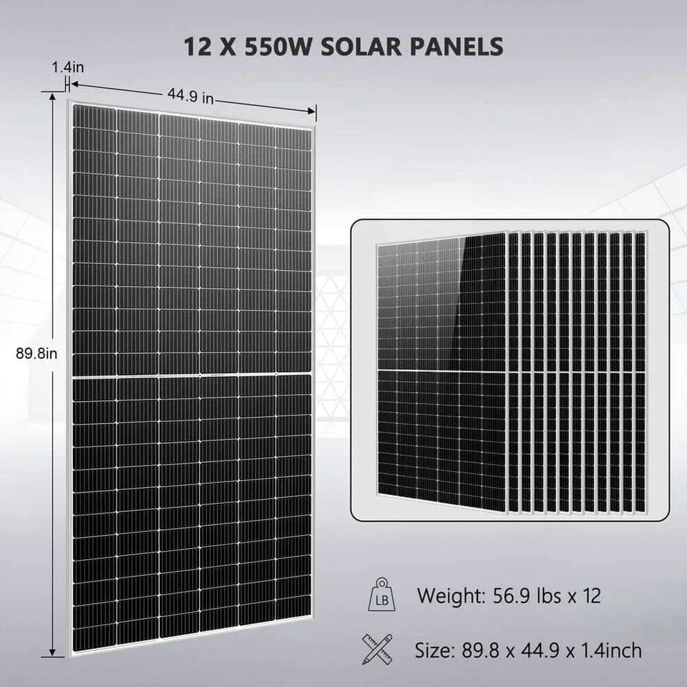 Included in the SunGoldPower SGM-10K20 kit are ten 550W solar panels, offering a total capacity of 5500W. This sizable solar panel array plays a crucial role in efficiently capturing solar energy, which is essential for charging the Powerwall lithium batteries and powering the 10KW inverter. The combined wattage and efficiency of these panels ensure reliable and effective energy production, even in areas with variable sunlight exposure. The integration of this powerful solar array with robust battery storage and a high-capacity inverter forms a complete and sustainable solution for achieving energy independence in off-grid or remote environments.