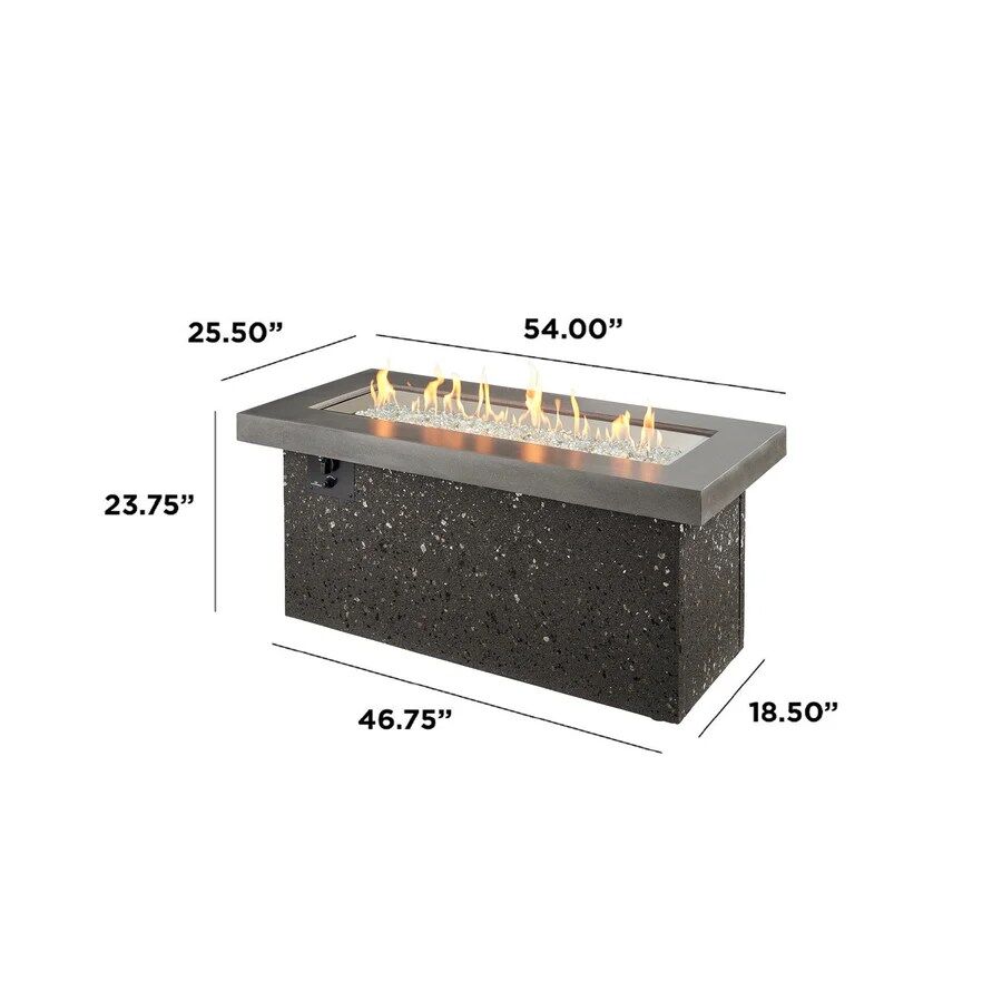 The Grey Key Largo Gas Fire Pit Table is a stunning display of fire, captivating with its radiant flames gracefully dancing upon a bed of shimmering fire glass. At the heart of its design is a remarkable 12” x 42” stainless steel Crystal Fire® Burner, serving as the focal point.